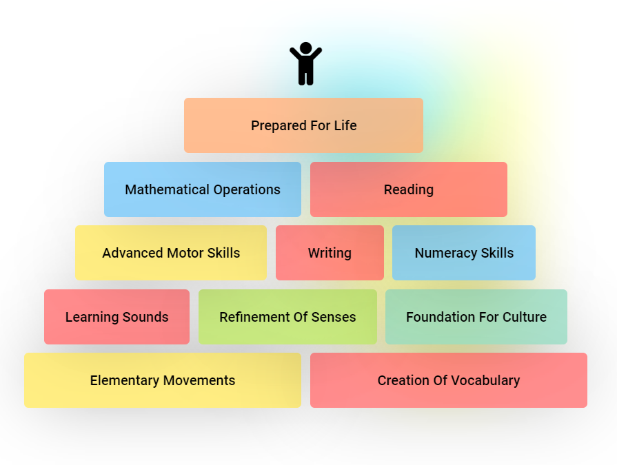 Scientists call the first six years as the foundation for life. In these years, the child creates the adult he will become. In our classroom we help children work toward creating this adult who will grow to fulfil his potential.